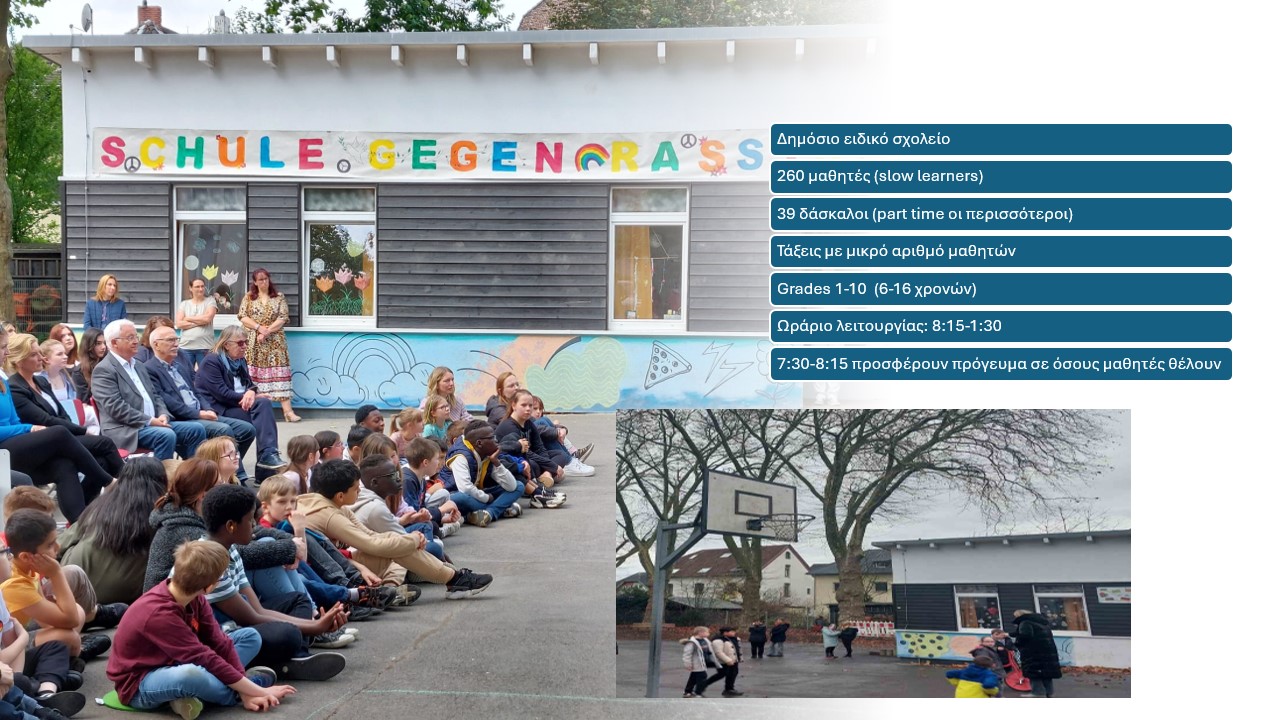 Το Else-Hirsch-Schule είναι δημόσιο σχολείο ειδικής εκπαίδευσης το οποίο εστιάζει στη στήριξη μαθητών με ιδιαίτερες μαθησιακές ανάγκες και στην προώθηση ενός σχολικού περιβάλλοντος που ενθαρρύνει την ανάπτυξη, την ενσωμάτωση και τη συμμετοχή στην κοινωνία. Η συμμετοχή της εκπαιδευτικού στο πρόγραμμα job shadowing αποτέλεσε μια ιδιαίτερα ωφέλιμη επαγγελματική εμπειρία. Μέσα από την παρακολούθηση της καθημερινής σχολικής ζωής και των μαθημάτων, είχε τη δυνατότητα να γνωρίσει από κοντά ένα διαφορετικό εκπαιδευτικό σύστημα και σύγχρονες παιδαγωγικές πρακτικές στον τομέα της ειδικής εκπαίδευσης. Η εκπαιδευτικός εξοικειώθηκε με εξατομικευμένες μεθόδους διδασκαλίας, προσαρμοσμένες στις ανάγκες των μαθητών, καθώς και με στρατηγικές διαφοροποιημένης μάθησης και διαχείρισης της τάξης.
