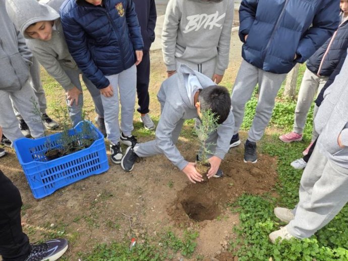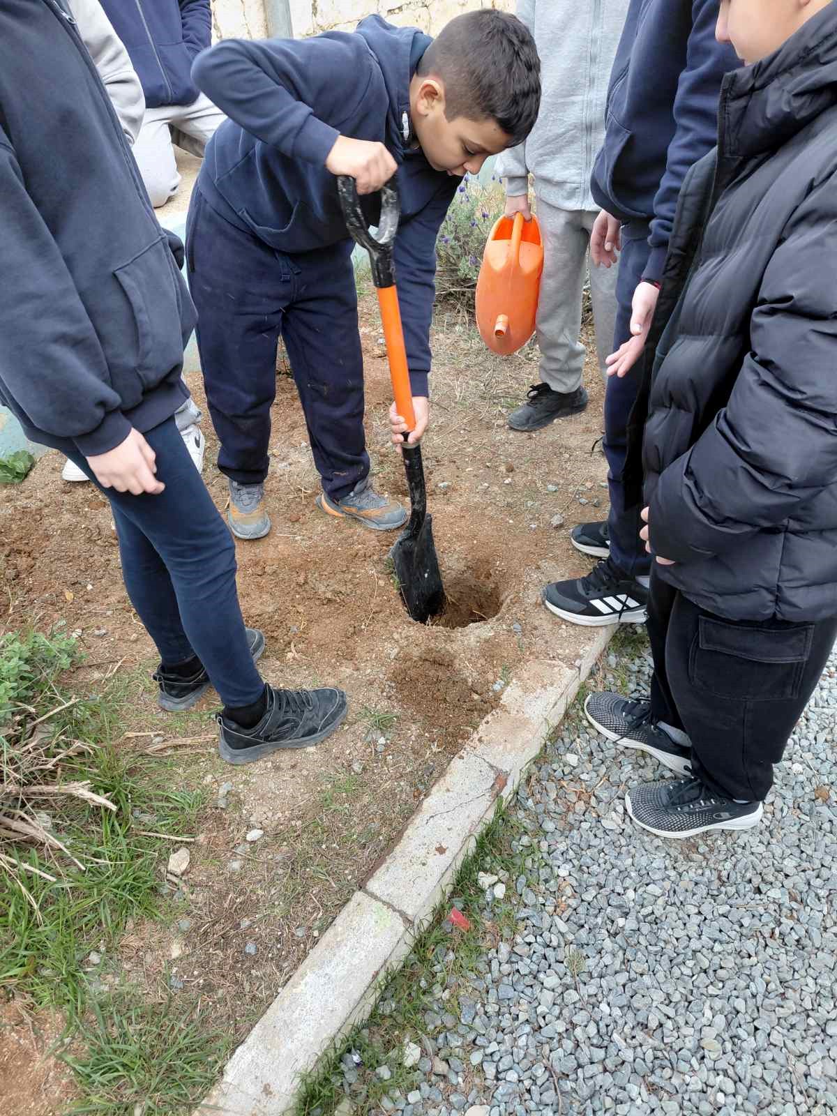 Η προστασία του περιβάλλοντος ξεκινά από εμάς και αποτελεί βασικό μέρος της εκπαιδευτικής μας φιλοσοφίας. Την Τετάρτη 21 Ιανουαρίου 2026, μαθητές και μαθήτριες των Ε΄ και Στ΄ τάξεων, μαζί με τους εκπαιδευτικούς τους, συμμετείχαν με ενθουσιασμό σε δράση δενδροφύτευσης στον σχολικό μας χώρο. Οι μαθητές, χωρισμένοι ανά τάξη, ανέλαβαν ενεργό ρόλο στη φύτευση. Συνολικά φυτεύθηκαν 35 δεντράκια, με στόχο την ενίσχυση του πρασίνου και της σκίασης, τη βελτίωση της ποιότητας του αέρα και, κυρίως, την καλλιέργεια περιβαλλοντικής συνείδησης και υπευθυνότητας στους μαθητές μας. Η δράση αυτή γέμισε τα παιδιά με χαρά και ενθουσιασμό, καθώς ένιωσαν ότι συμβάλλουν ενεργά στη δημιουργία νέας ζωής στο περιβάλλον