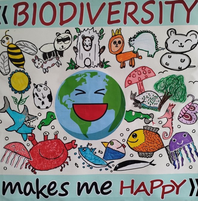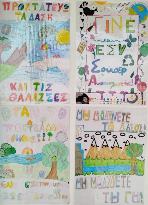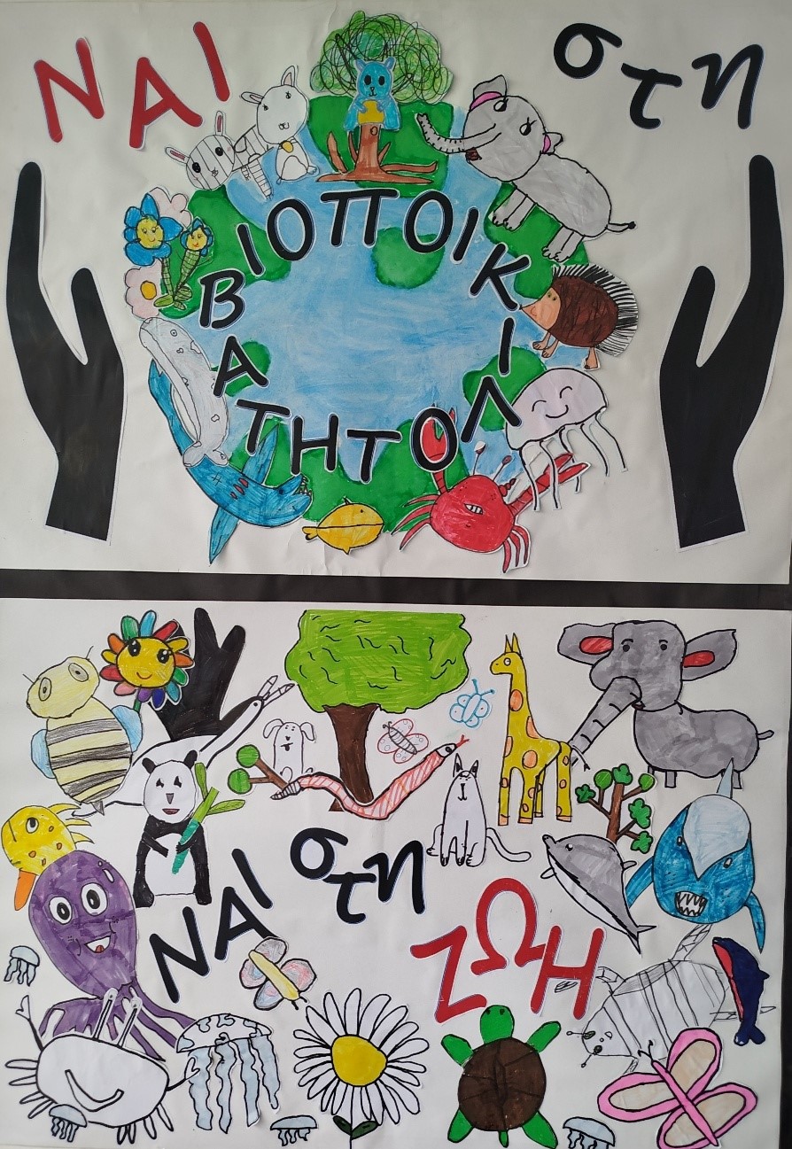 Στη συνέχεια, μέσα από δημιουργική ομαδική εργασία, τα παιδιά σχεδίασαν και δημιούργησαν αφίσες με περιβαλλοντικά συνθήματα, εκφράζοντας τις ιδέες και τα μηνύματά τους για έναν πιο πράσινο και βιώσιμο κόσμο. Η δράση υλοποιήθηκε ταυτόχρονα σε όλες τις τάξεις του σχολείου κατά την 5η και 6η διδακτική περίοδο, ακολουθώντας κοινό πρόγραμμα και κοινό στόχο, ενισχύοντας το αίσθημα συνεργασίας και συλλογικής ευθύνης. Μέσα από τη βιωματική αυτή διαδικασία, οι μαθητές κατανόησαν ότι η γνώση για τη βιοποικιλότητα και η περιβαλλοντική ευαισθητοποίηση αποτελούν βασικά βήματα για τη διαμόρφωση ενεργών και υπεύθυνων πολιτών.